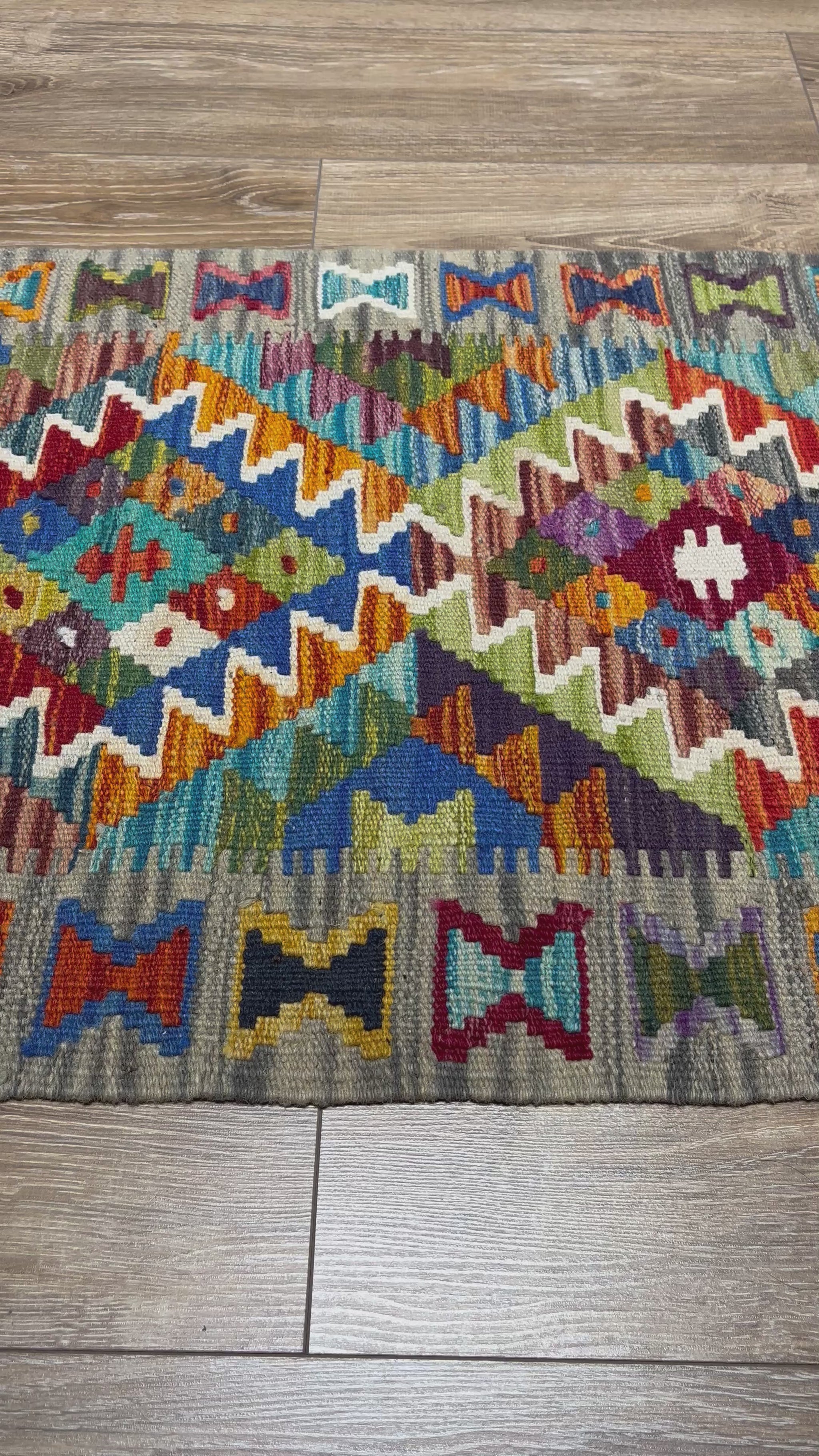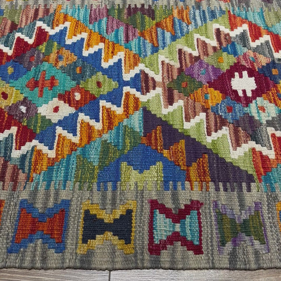 Nomad Glow El Dokuma Kilim – Çok Renkli Geometrik Desenli Otantik Kilim (0.56 x 0.90 m) | NG-0017