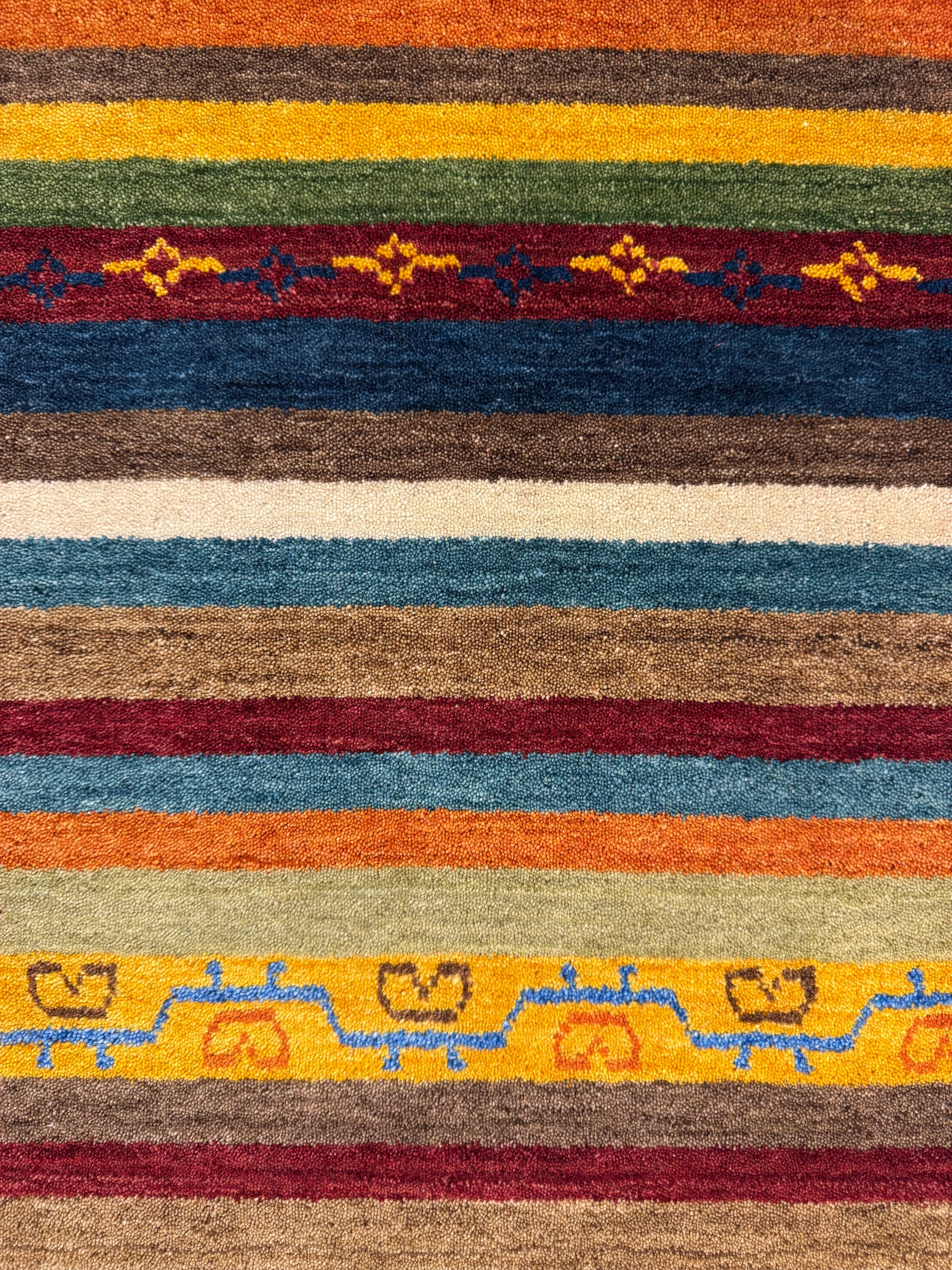 Color Loom El Dokuma Halı CL-0017 | Renkli Çizgili ve Motifli Yolluk Türk Halısı, El Yapımı Bohem Kilim