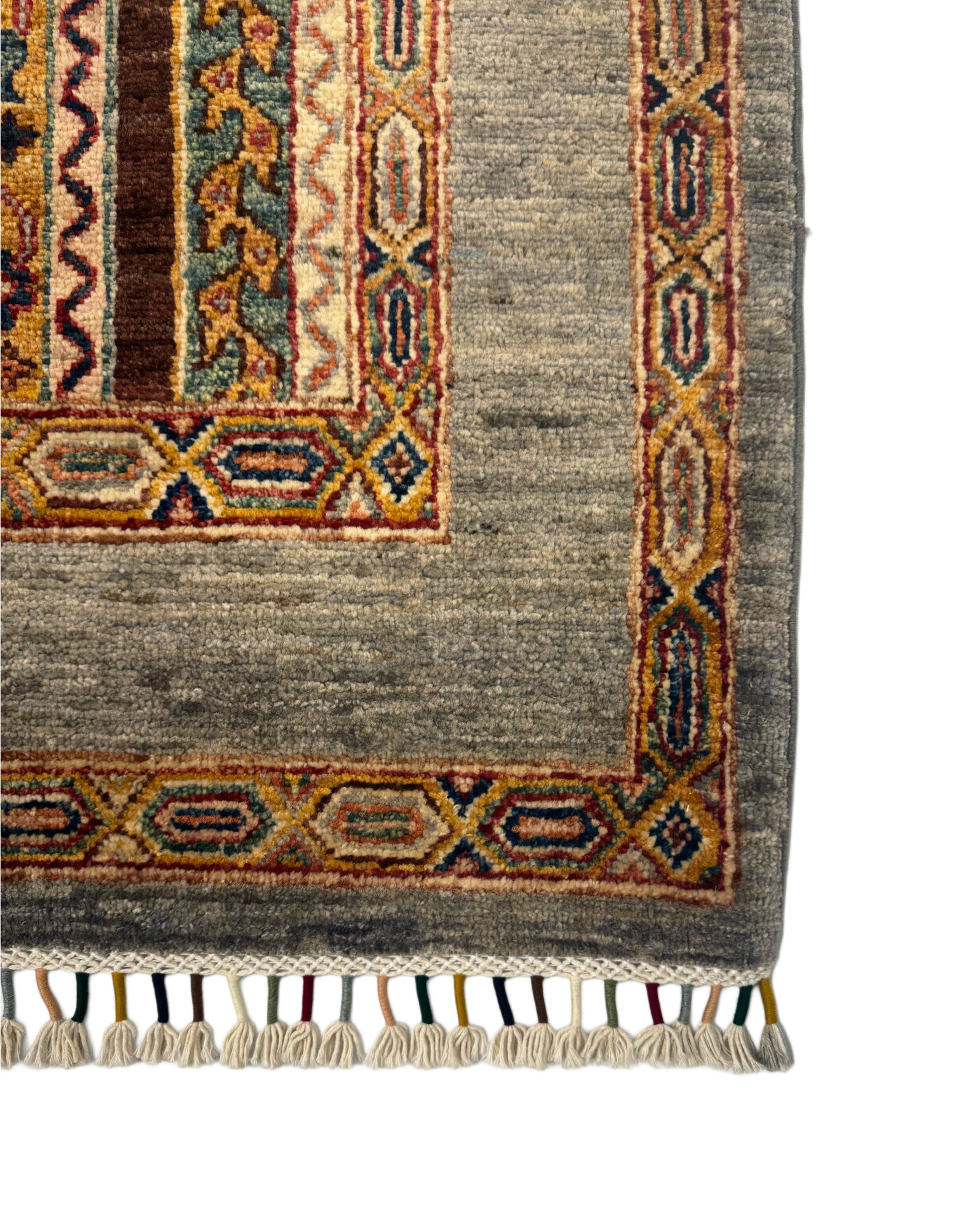 %100 doğal yün kullanılarak el tezgâhlarında dokunan bu özel parça, dayanıklılığıyla uzun yıllar evinize estetik ve sıcaklık katmaya devam eder.