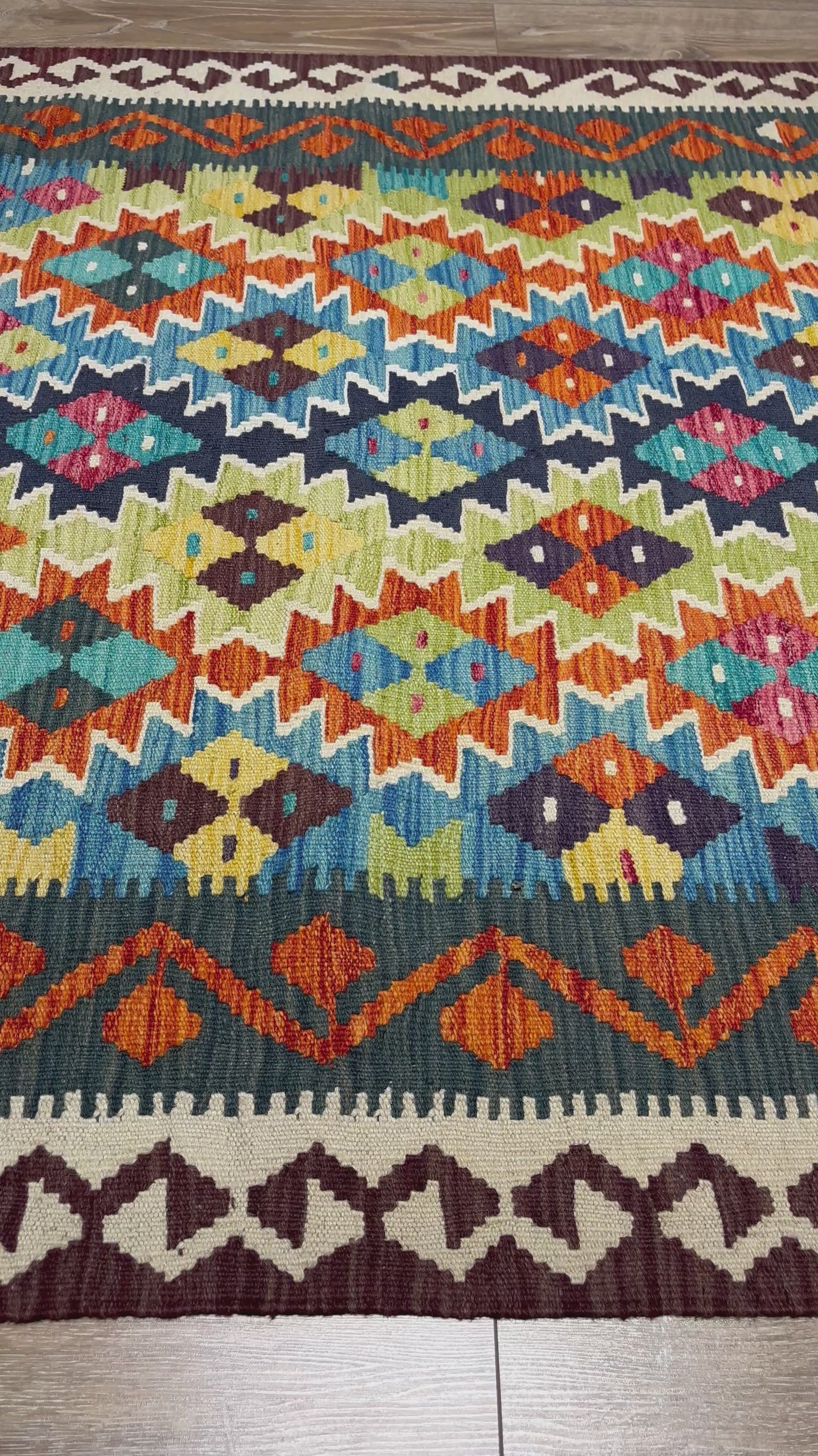 Nomad Glow El Dokuma Kilim – Canlı Renkli Geometrik Desenli Otantik Kilim (1.30 x 1.90 m) | NG-0024