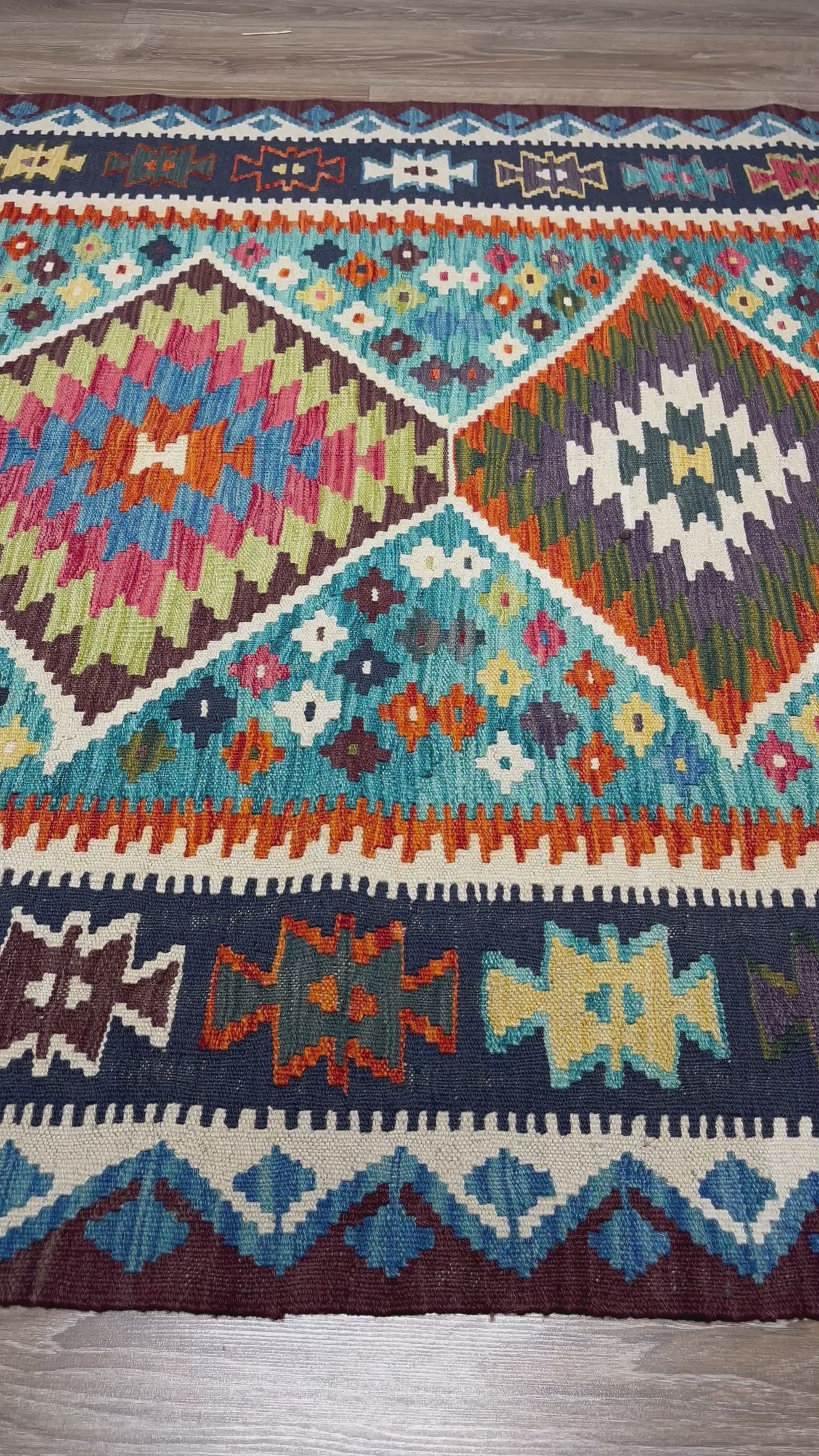 Nomad Glow El Dokuma Kilim – Çerçeve Desenli Canlı Geometrik Otantik Kilim (1.50 x 2.00 m) | NG-0034