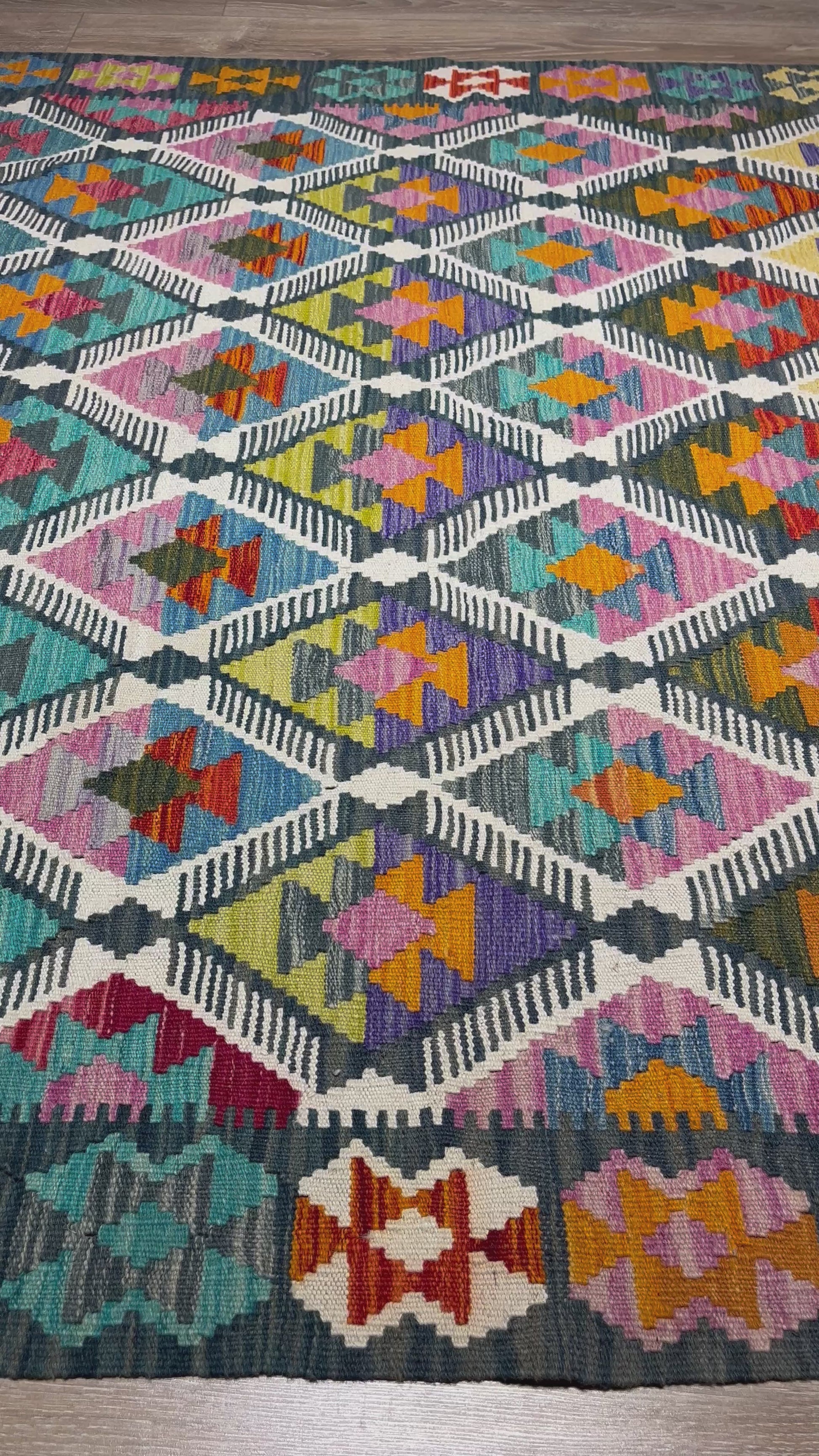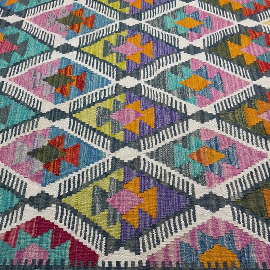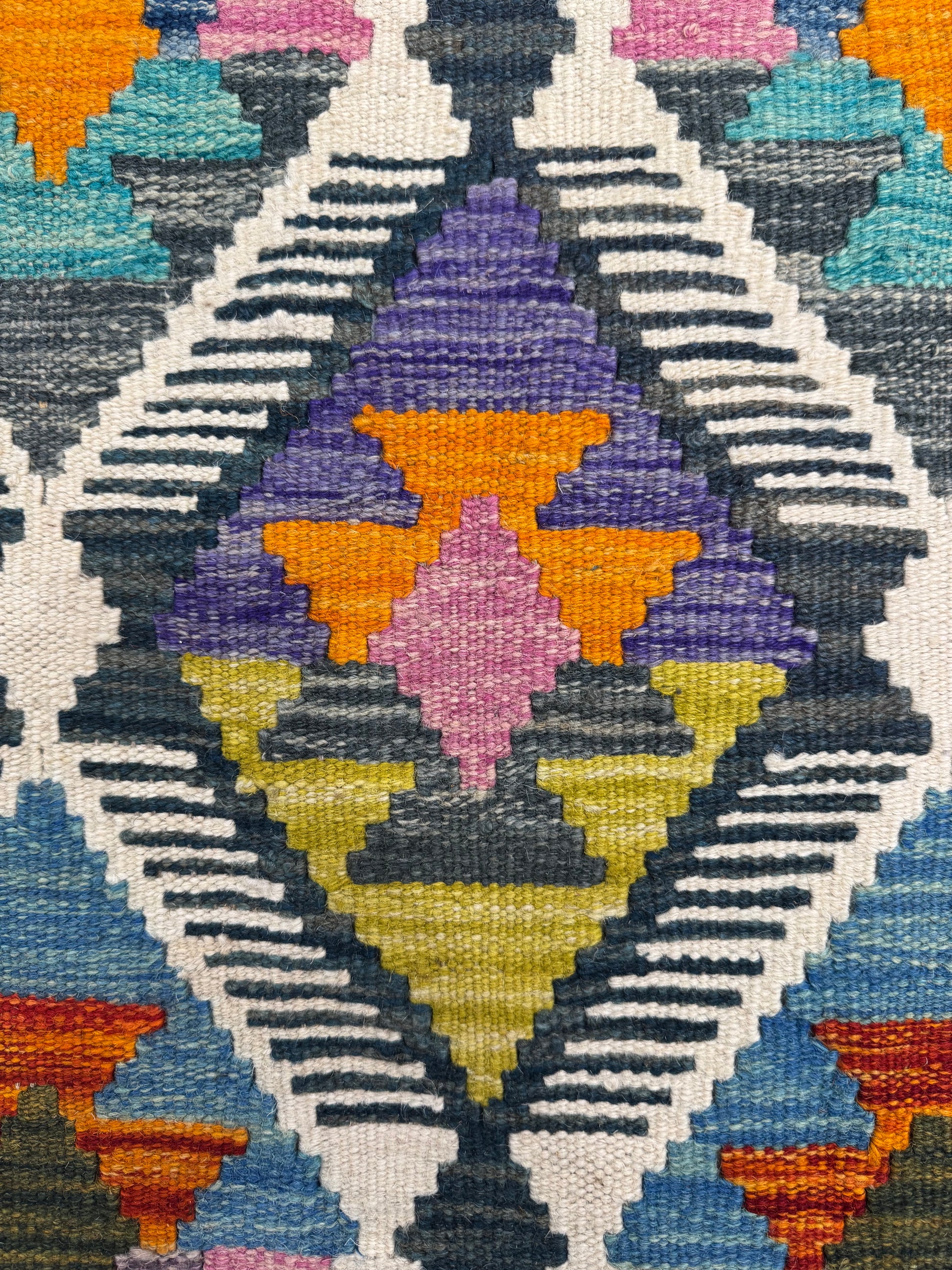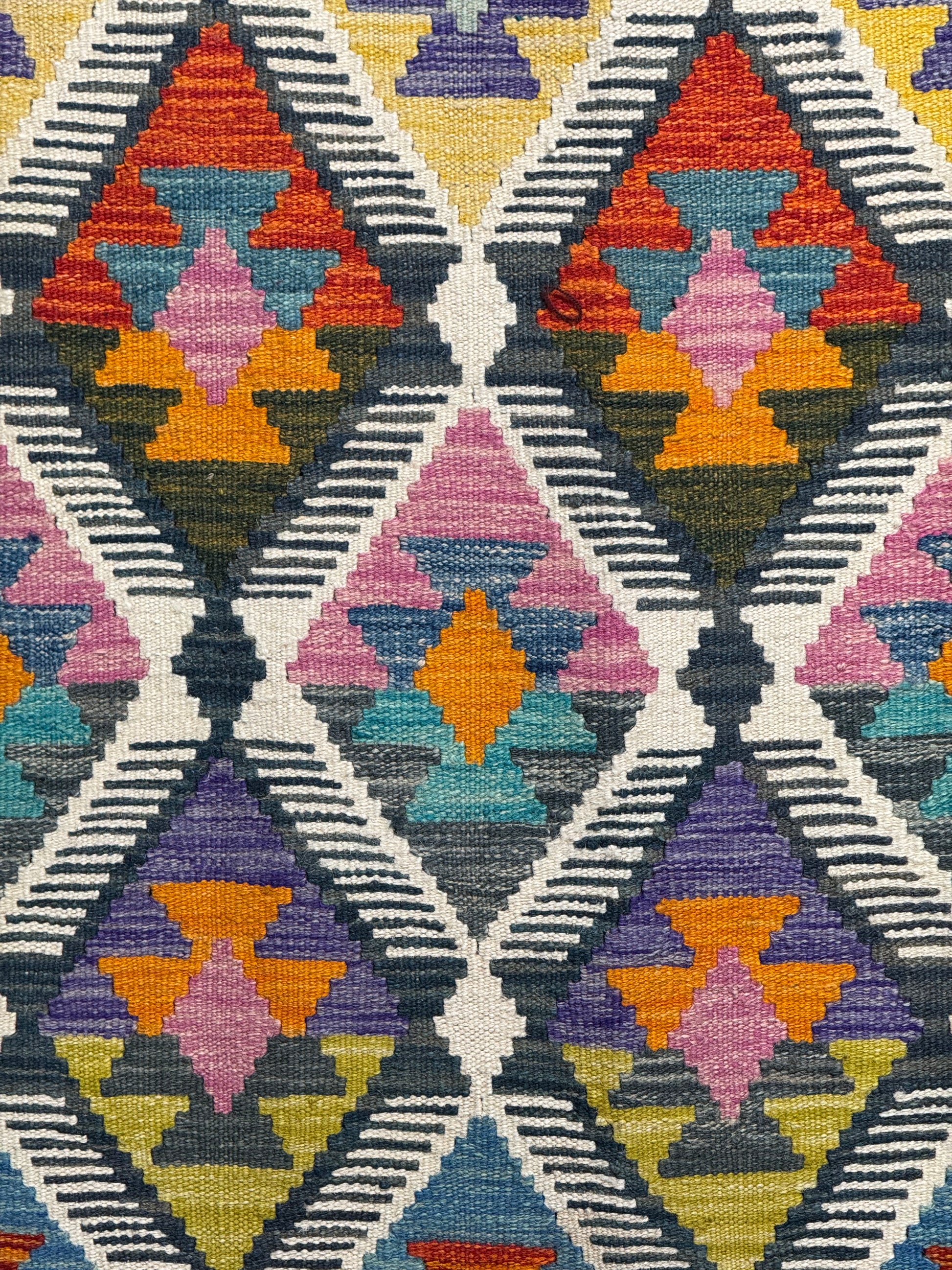 Nomad Glow El Dokuma Kilim – Çok Renkli Elmas Motifli Geniş Otantik Kilim (1.68 x 2.47 m) | NG-0036