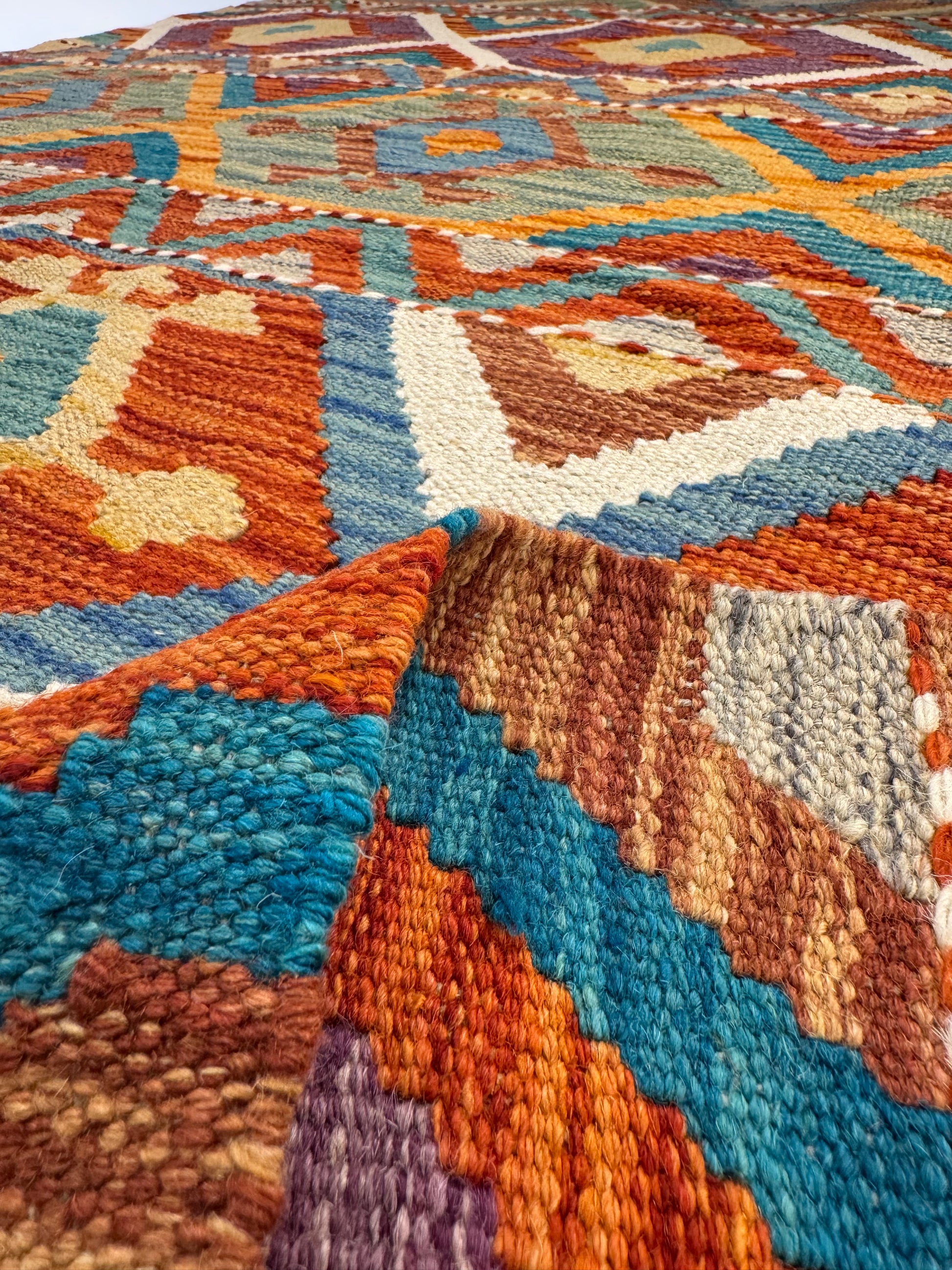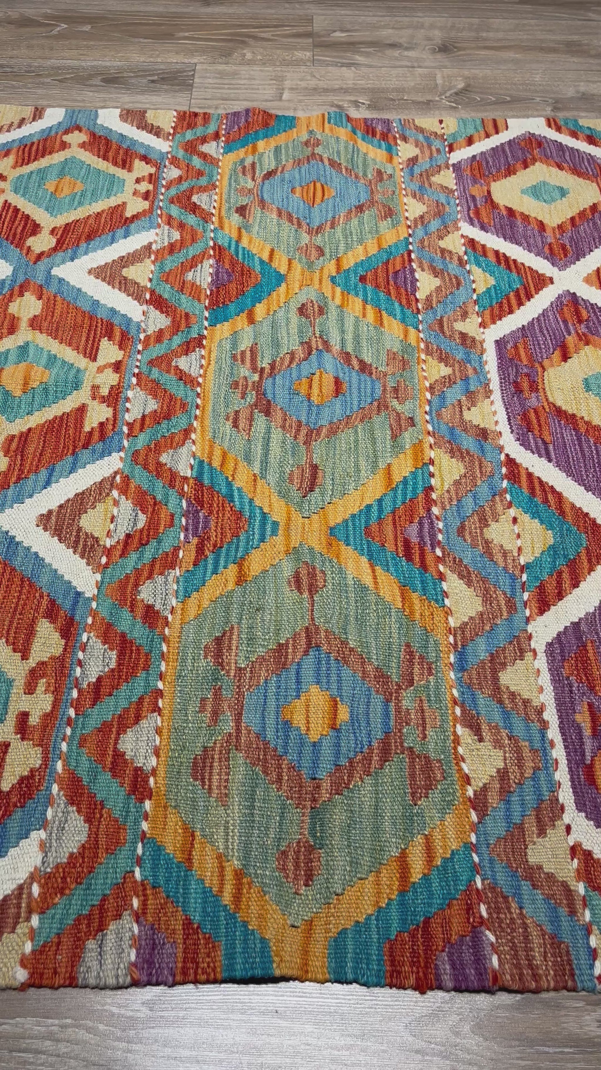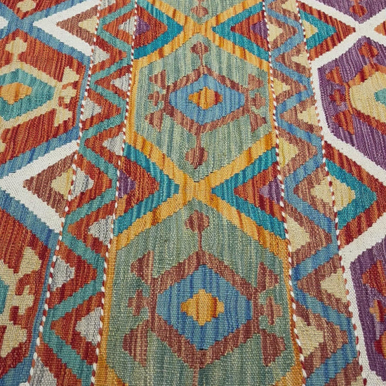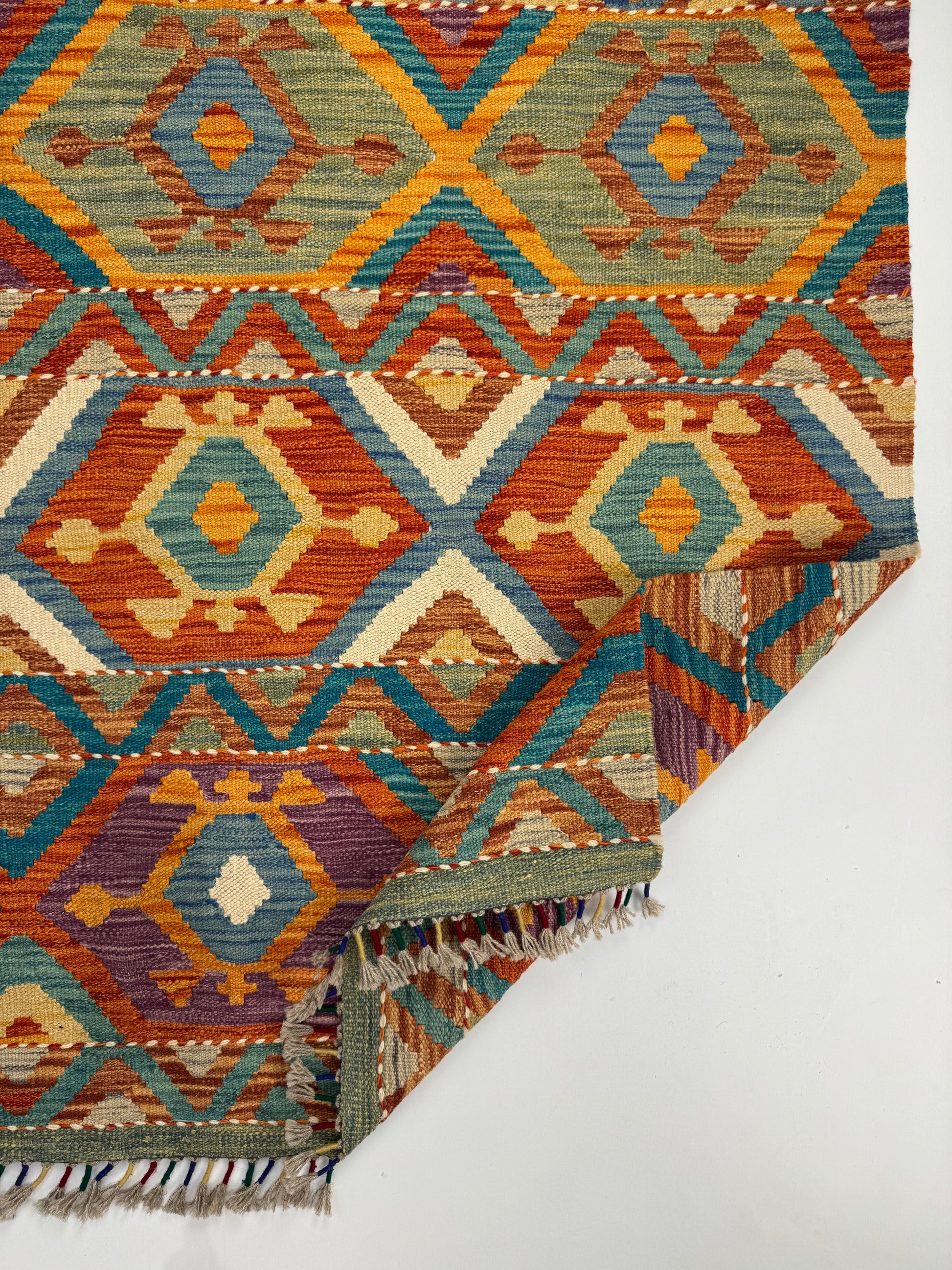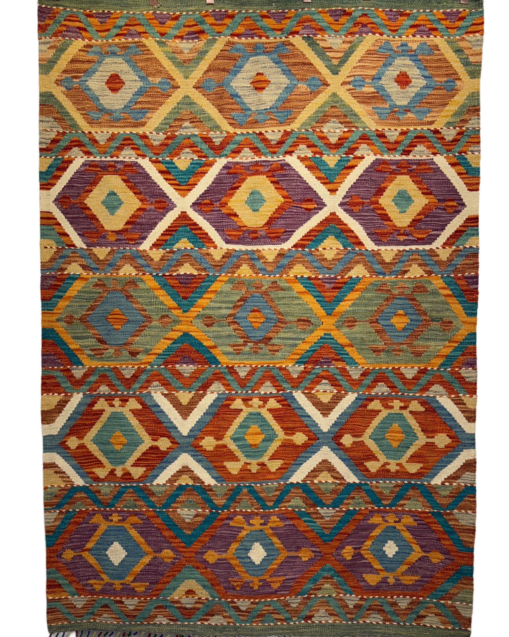 Nomad Glow El Dokuma Kilim – Çok Renkli Elmas ve Geometrik Desenli Otantik Kilim (1.22 x 1.81 m) | NG-0032