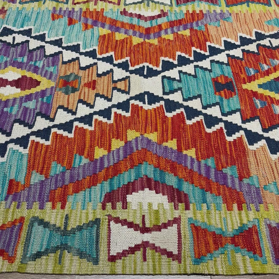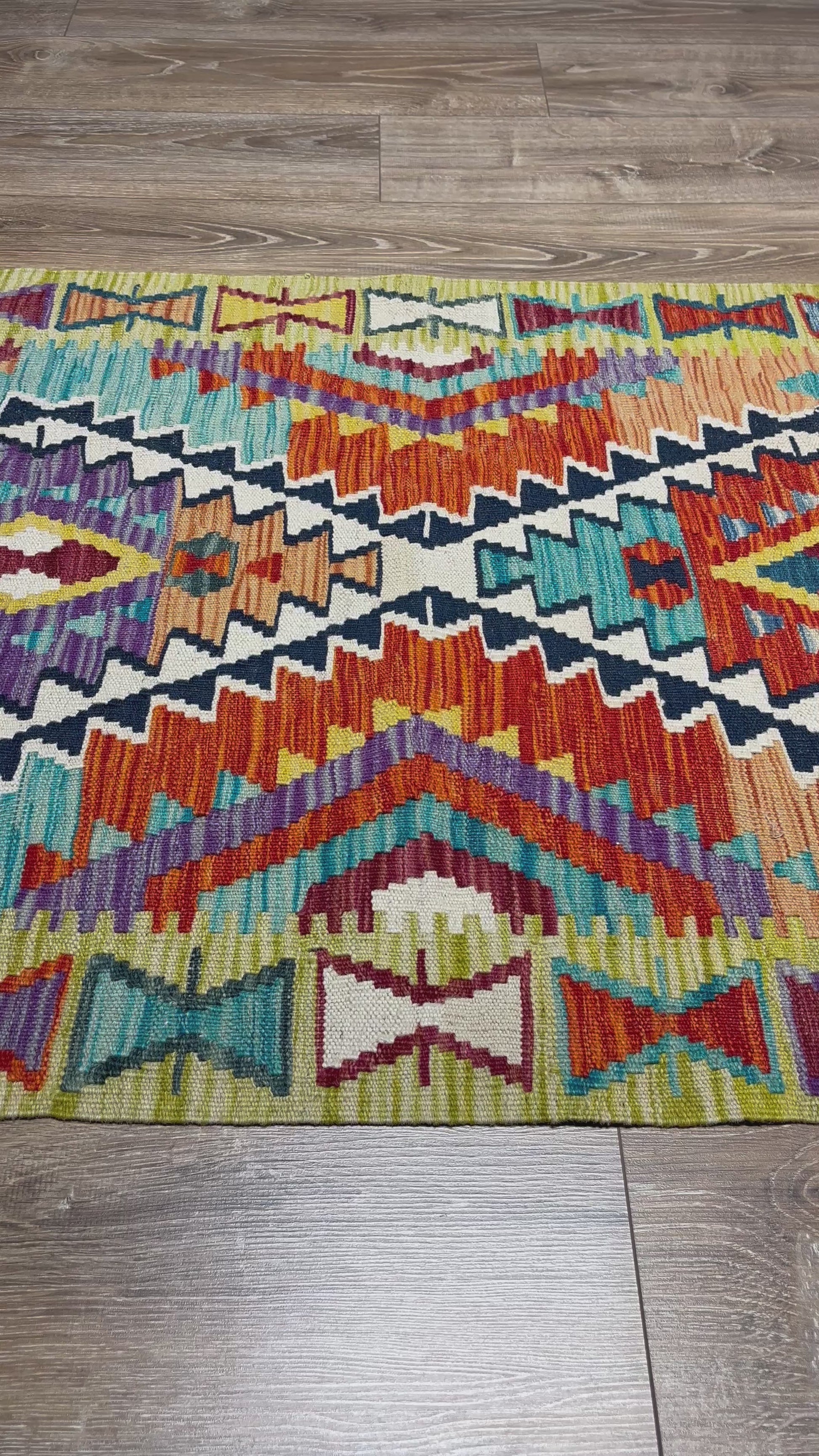 Nomad Glow El Dokuma Kilim – Sarı, Turuncu ve Mavi Geometrik Desenli Otantik Kilim (0.83 x 2.88 m) | NG-0026
