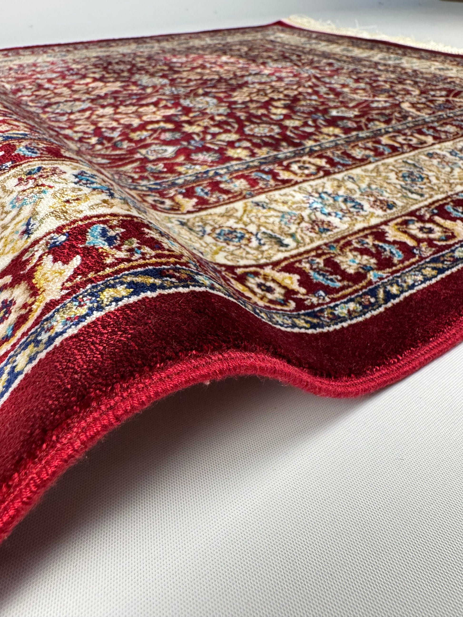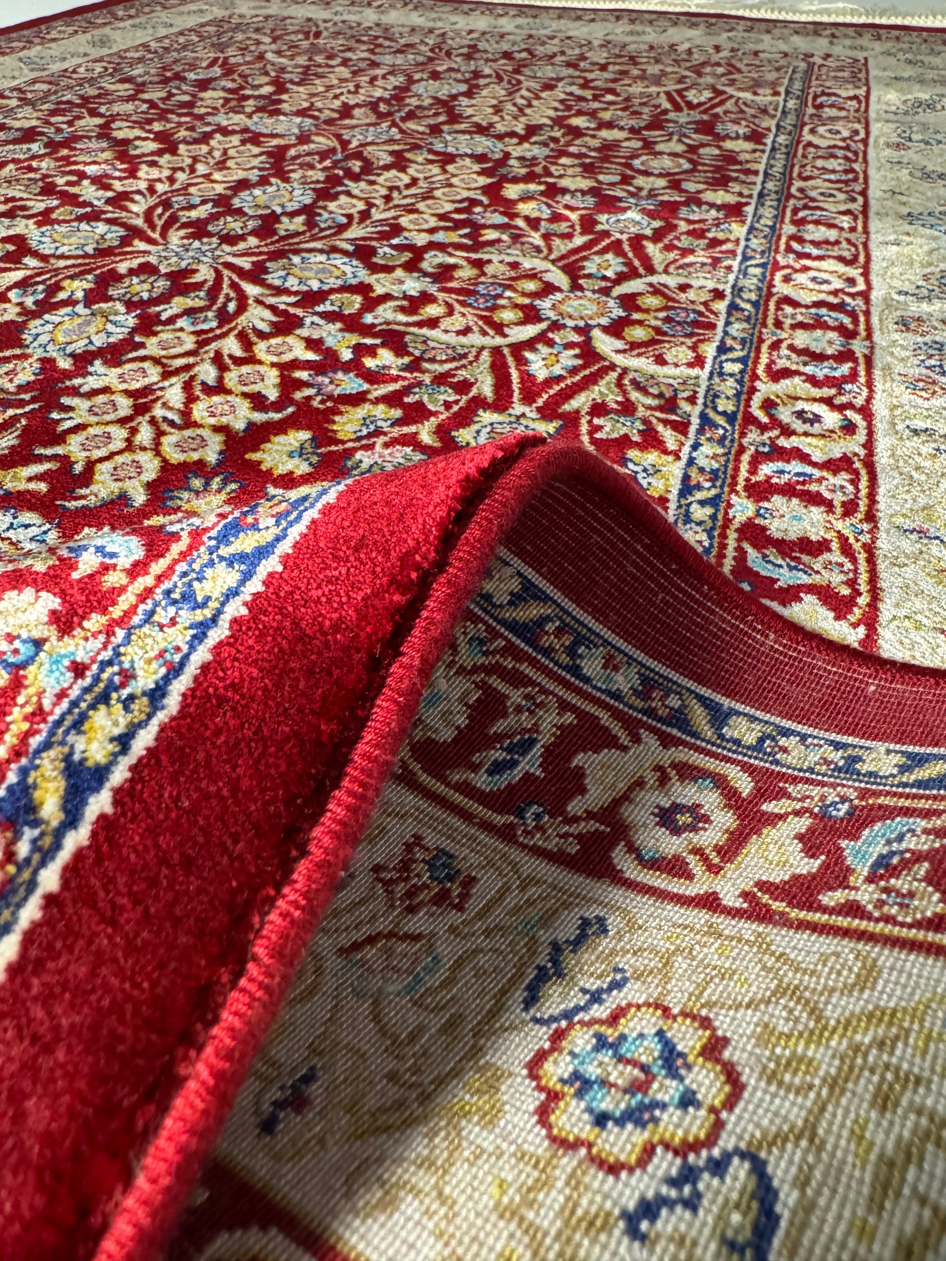 Silken Echo serisinin SE-0047 kodlu bu halısı, bordo ve krem tonlarının zarif uyumunu ipeksi dokusuyla buluşturur. İnce işlenmiş klasik motifleriyle hem şıklığı hem de lüksü bir arada sunar. Işığın açısına göre değişen parlaklığı, mekânlarınıza sofistike bir atmosfer katar. Modern ve klasik dekorasyon tarzlarına mükemmel uyum sağlar.
