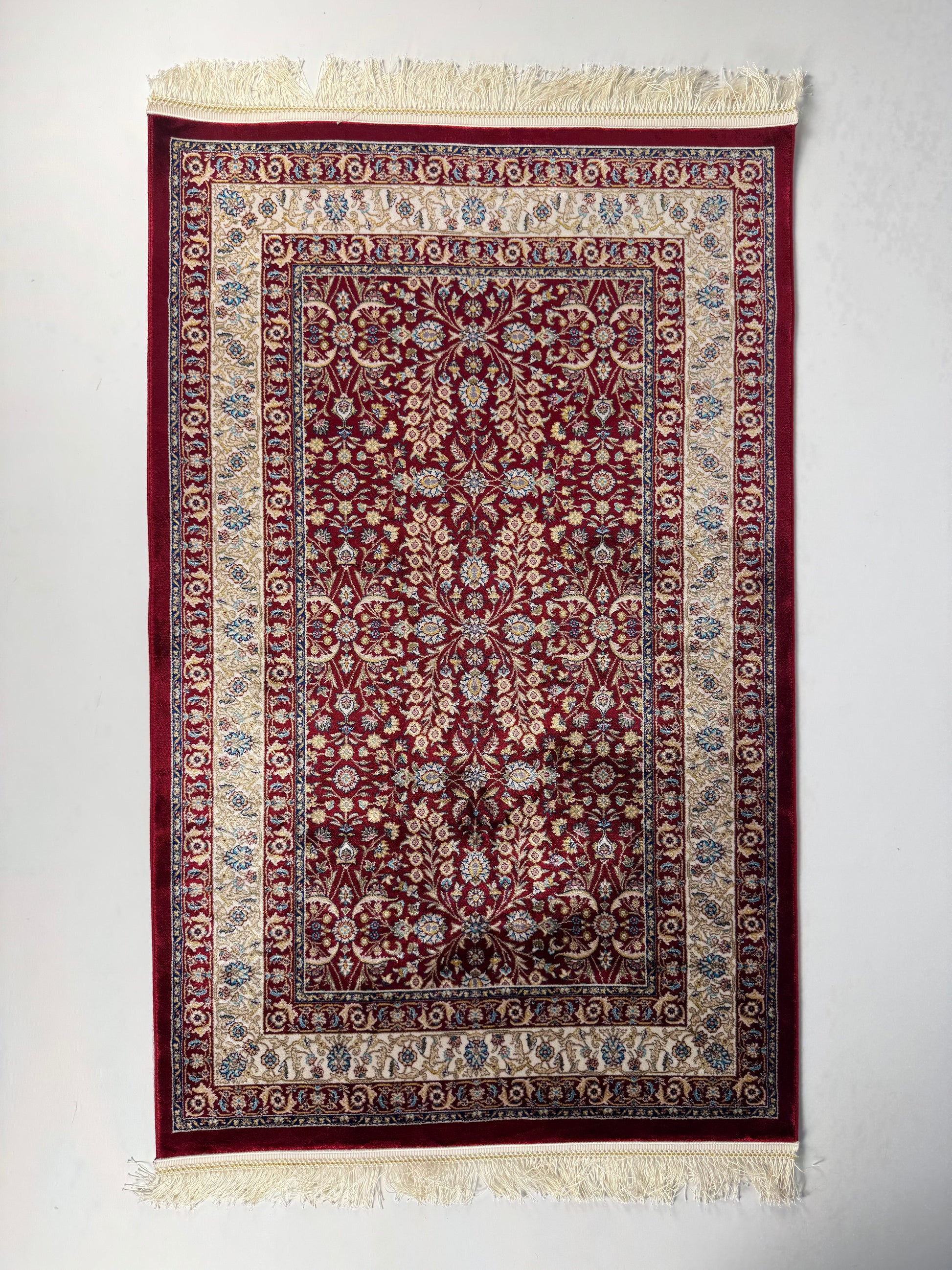 Silken Echo Halı – Bordo Krem İpeksi Dokulu Klasik Desenli Dekoratif Halı (0.80 x 1.25 m) | SE-0047
