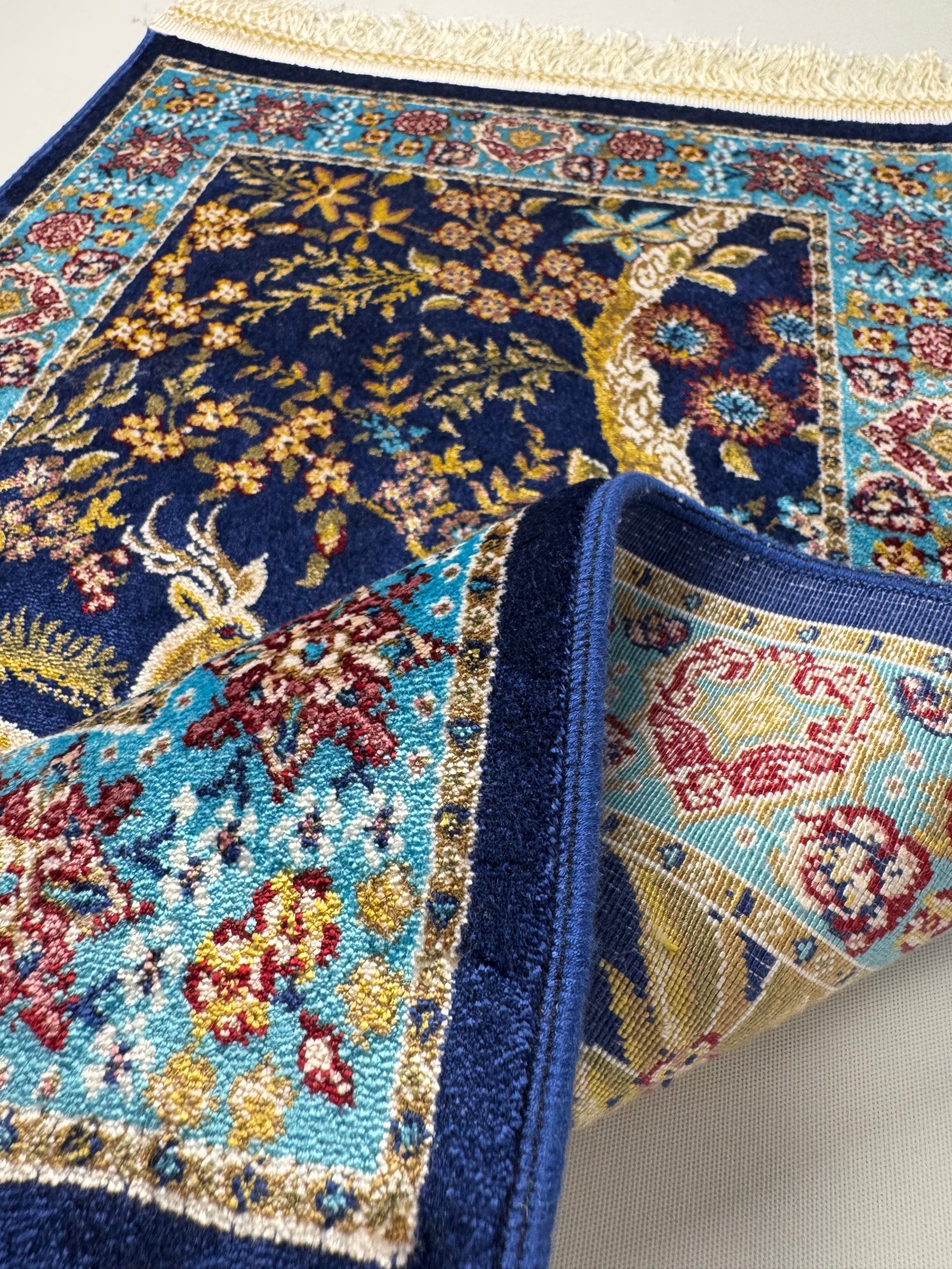 Silken Echo İpeksi Dokuma Halı – Lacivert Zeminli Ceylan ve Doğa Motifli Küçük Halı (0.40 x 0.60 m) | SE-0033