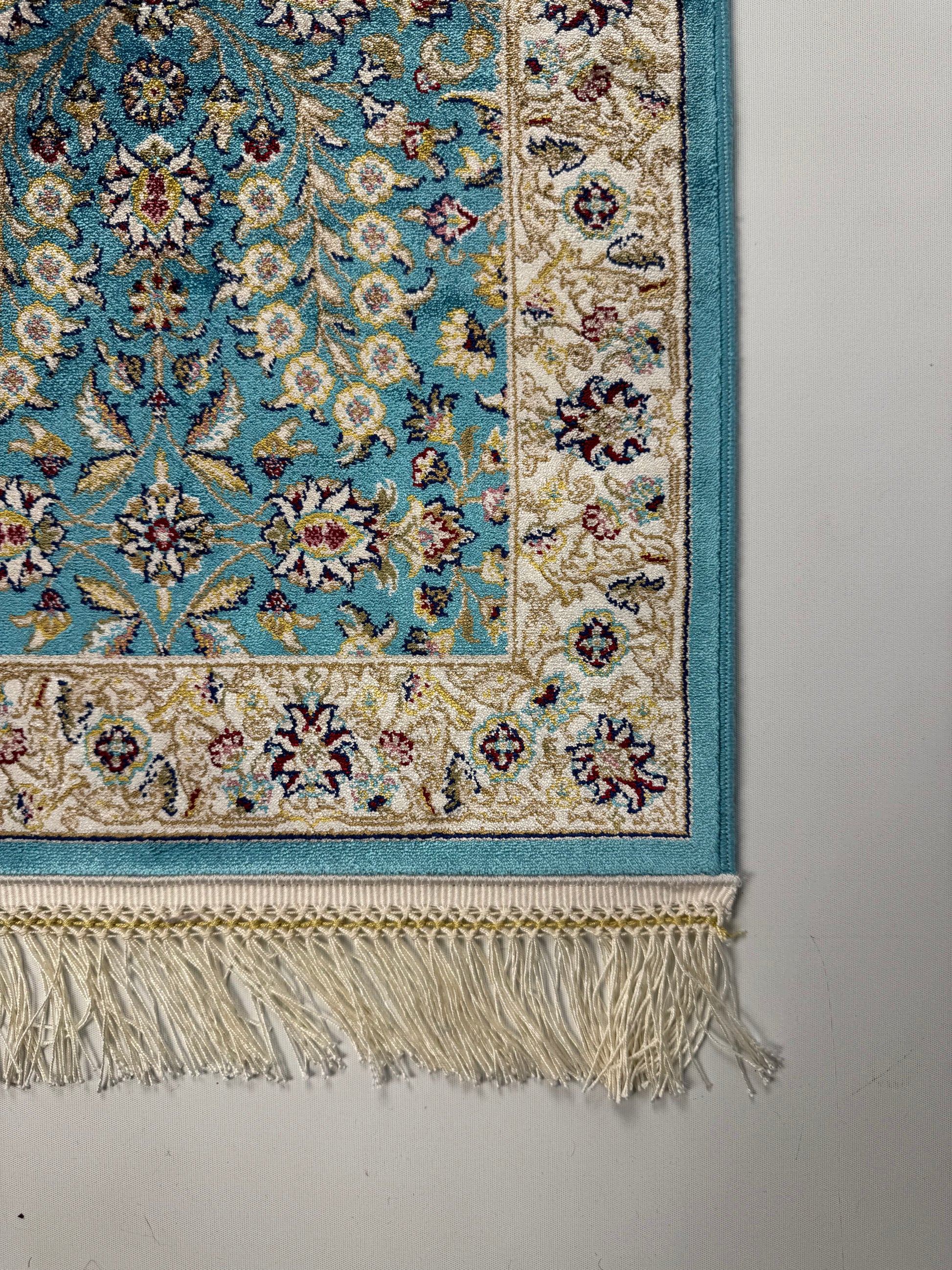 Silken Echo İpeksi Dokuma Halı – Turkuaz Zeminli Çiçek Motifli Küçük Halı (0.40 x 0.60 m) | SE-0031